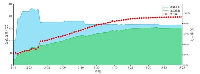 據測算,制造業自 2020 年 3 月初復工率首次突破 50% 后,至 3 月底已恢復至 85.2%,至 4 月底已恢復至 94.9%,實現產業穩步復蘇。