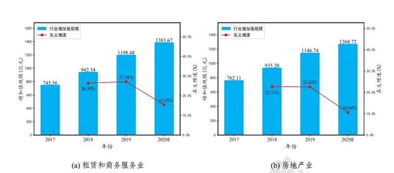 ▲工業互聯網帶動租賃和商務服務業,房地產業的增加值規模