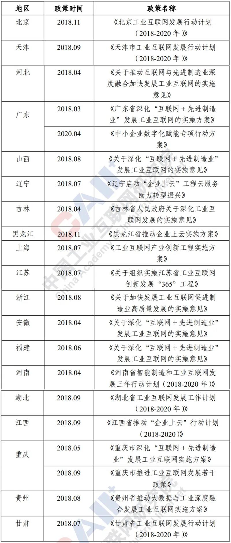 ▲部分省、自治區、直轄市工業互聯網相關政策