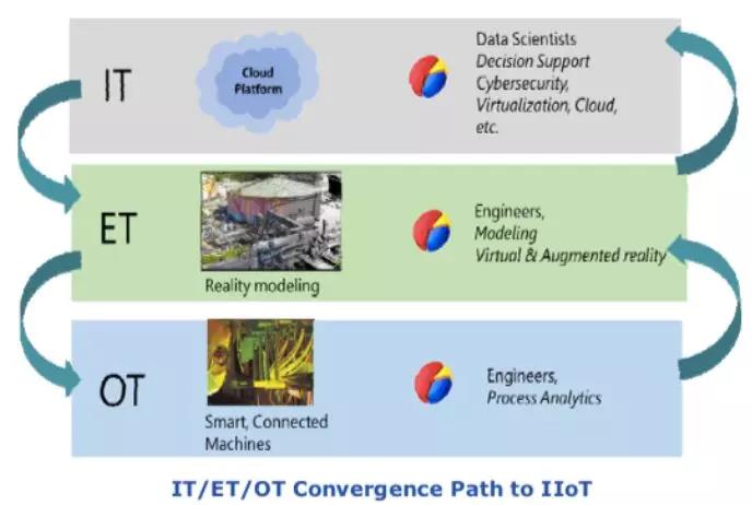 在制造業(yè)中由于智能設(shè)備的復雜度增加,相應(yīng)的軟件推動 IT 和 OT 緊密的集成,于是創(chuàng)造了在原有的知識上獲得新的洞察和觀察視角的機會。只是在 IIoT 的數(shù)字化數(shù)據(jù)環(huán)境中,將 ET 工程技術(shù)中那些為建立虛擬模型的技術(shù)納入 OT-IT 融合的進程和交換中,這才能真正發(fā)揮作用。或許過去 ET 已經(jīng)被隱含在 OT-IT 的融合中,但是它的作用被低估了。在現(xiàn)在和將來的工作環(huán)境必須改變這種觀念,原因在于建模工具已成為管理決策或技術(shù)決策中的基礎(chǔ)和必備的環(huán)節(jié)。