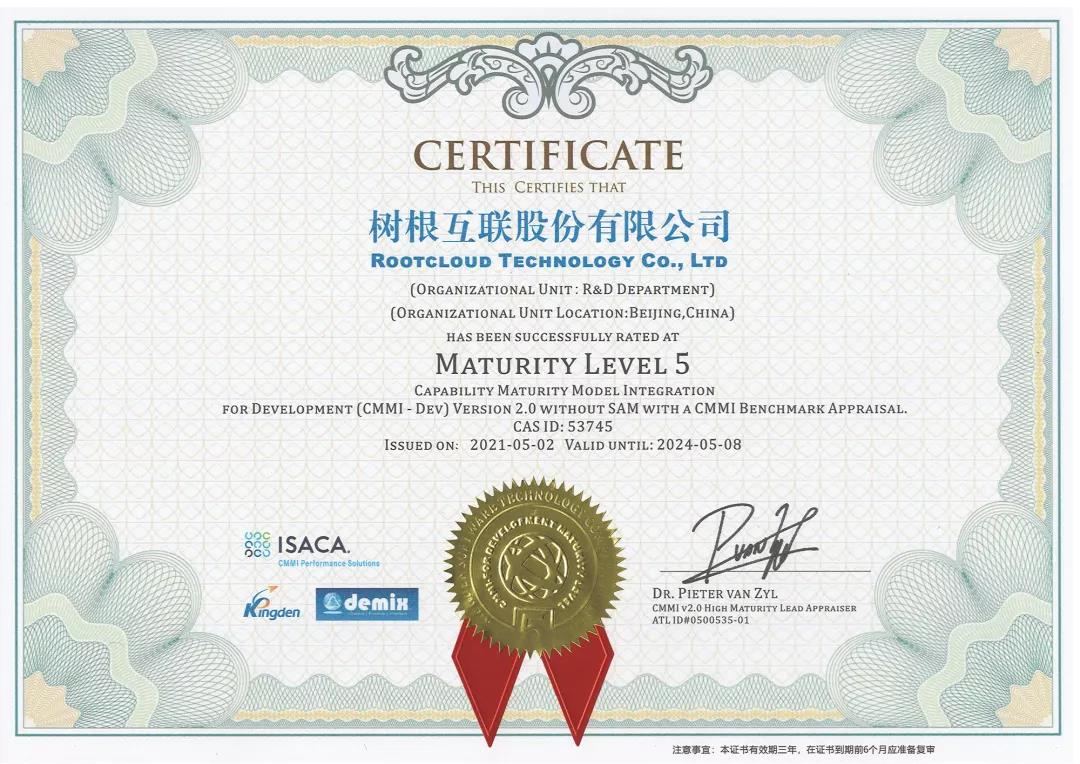 而樹根科技,是繼2017年通過CMMI3級認證以來,經過4年的努力,又獲得這一權威認證最高級別CMMI5的認可。