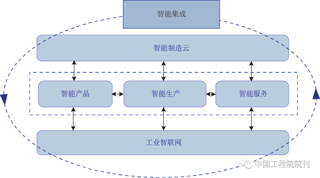 新一代智能制造是一個(gè)大系統(tǒng),主要由智能產(chǎn)品、智能生產(chǎn)和智能服務(wù)三大功能系統(tǒng)以及工業(yè)智聯(lián)網(wǎng)和智能制造云兩大支撐系統(tǒng)集合而成(圖8)。