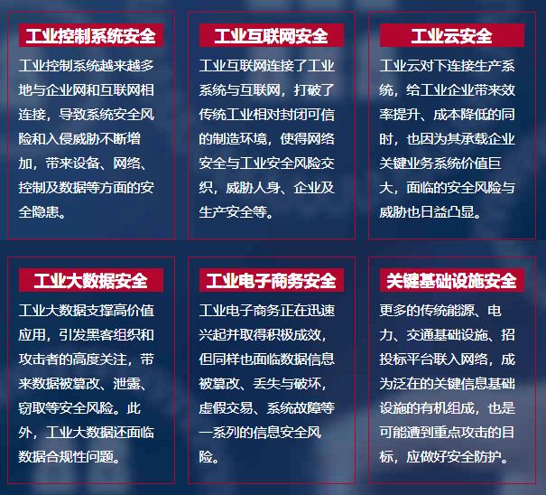 工業信息安全涉及工業領域各個環節,一般而言,包括工業控制系統安全、工業互聯網安全、工業大數據安全、工業云安全、工業電子商務安全、關鍵信息基礎設施安全等內容。