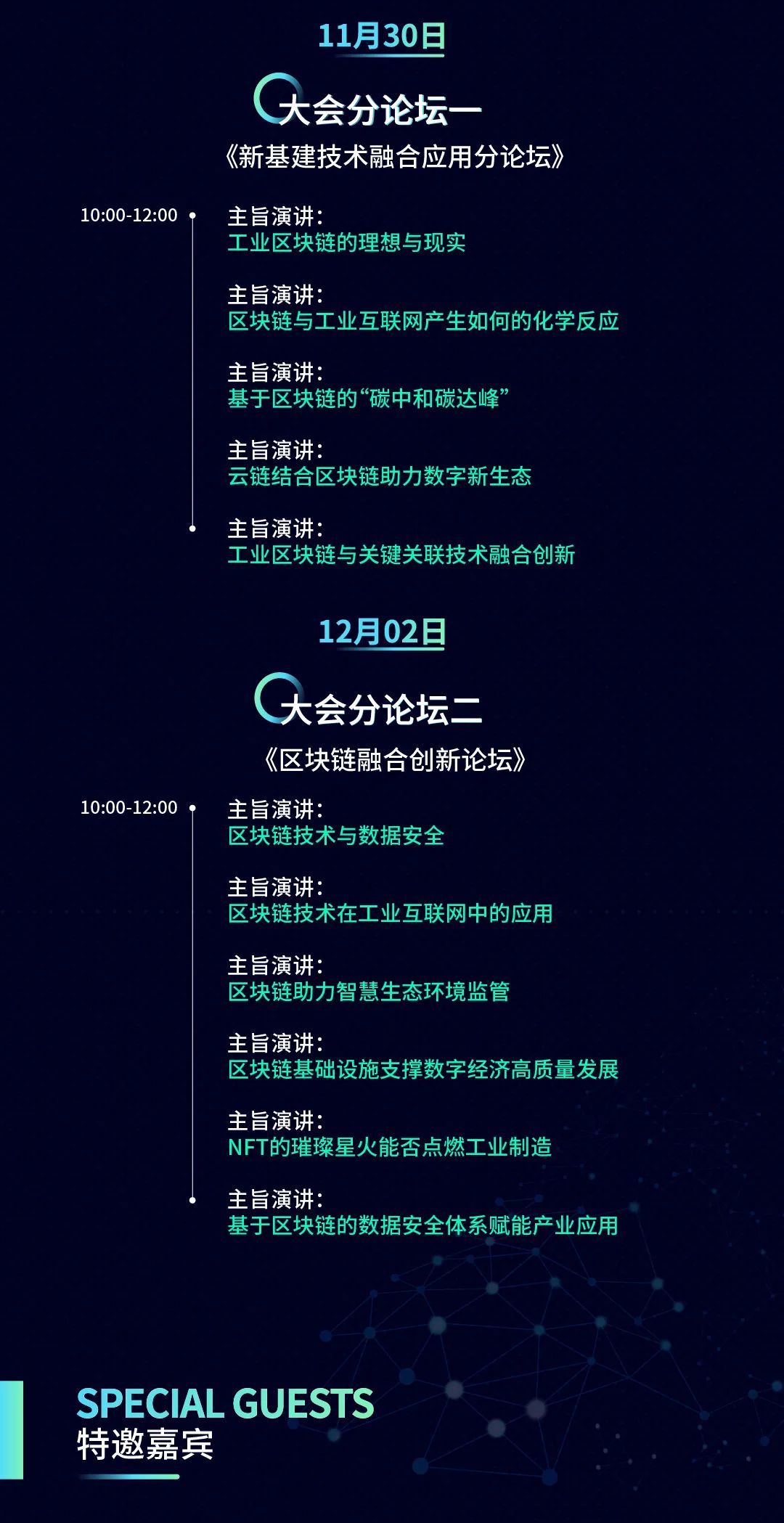 大會同期舉辦的兩大分論壇,新基建技術(shù)融合應(yīng)用分論壇區(qū)塊鏈融合創(chuàng)新論壇將圍繞區(qū)塊鏈技術(shù)在工業(yè)互聯(lián)網(wǎng)中的應(yīng)用以及NFT等熱門話題,與全國各行業(yè)的頭部企業(yè)共同探討區(qū)塊鏈的發(fā)展。