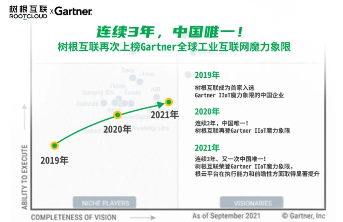 2016年成立至今,短短5年內(nèi),樹根科技股份有限公司(以下簡稱樹根科技)發(fā)展迅猛。201612月,樹根科技發(fā)布1.0版本的工業(yè)互聯(lián)網(wǎng)平臺——ROOTCLOUD(根云);2018年,樹根科技落戶廣州;2019年至2021年,樹根科技連續(xù)3年入選國際咨詢公司Gartner《全球工業(yè)互聯(lián)網(wǎng)平臺魔力象限報告》,是目前唯一一家入選的中國工業(yè)互聯(lián)網(wǎng)平臺公司,2019年至2020年,根云連續(xù)兩年入選工信部的跨行業(yè)跨領域工業(yè)互聯(lián)網(wǎng)平臺(以下簡稱雙跨平臺),是目前全國15大雙跨平臺之一;202012月,樹根科技完成C8.6億元的融資,估值超11億美元,成為中國工業(yè)互聯(lián)網(wǎng)獨角獸企業(yè)。