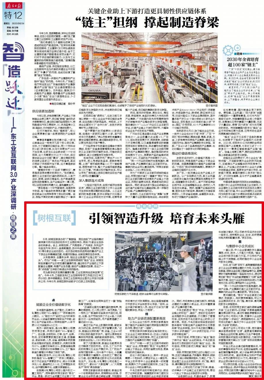 作為廣州唯一一家工業互聯網領域的“鏈主”企業,樹根借助“根云”平臺幫助產業鏈上下游企業,共同打造更加靈活、更具韌性的供應鏈體系。