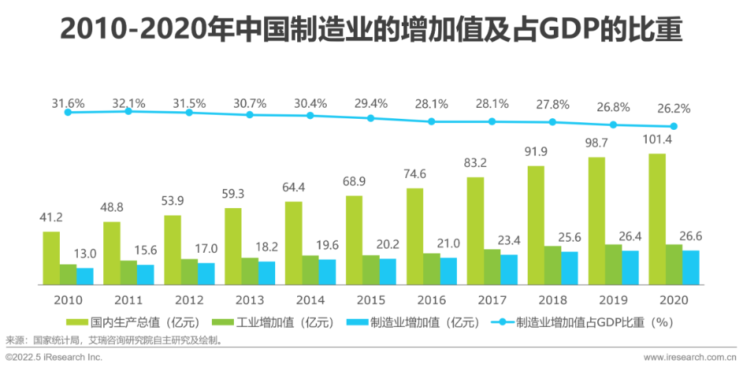 10年,中國規(guī)模以上制造業(yè)增加值的平均值為21萬億,占國內(nèi)生產(chǎn)總值的比重的平均值為28.8%,對GDP的貢獻十分顯著