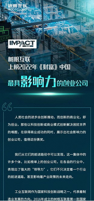 樹根科技上榜2022年《財富》中國最具影響力的創業公司