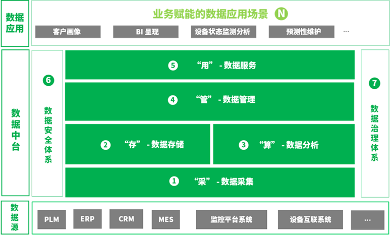 實際上,數字化大屏是企業全價值鏈數據資產的終端應用呈現,要讓數據流動起來,讓數據真正成為工業資產,首先要有一個數字底座,用來打通全鏈條的數據通路,充分挖掘數據價值。而數據中臺是數字化轉型的基礎和中樞系統,能夠將企業全域海量、多源、異構的數據整合資產化,為業務前臺提供數據資源和能力的支撐,以實現數據驅動的精細化運營。