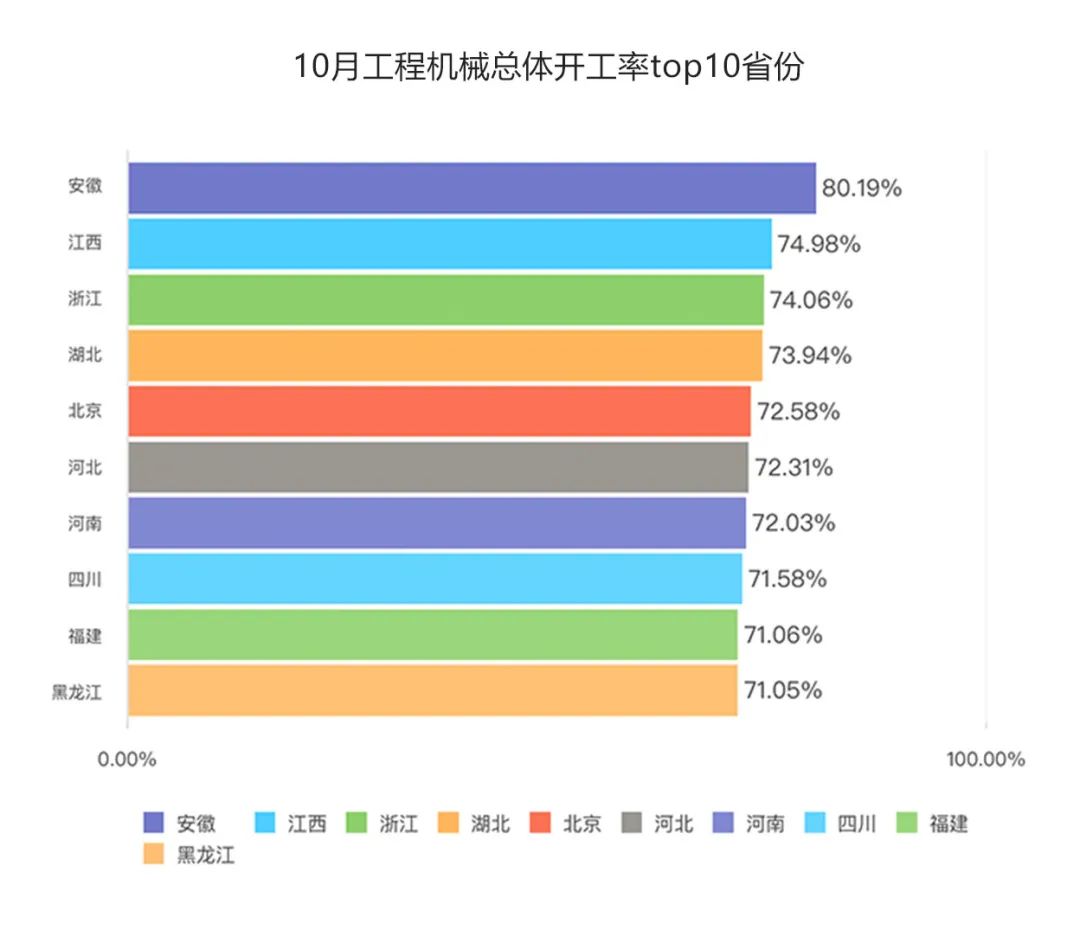 從2023年3月起到10月,各月均維持70%開工率高位的省份共有五個:安徽、海南、浙江、江西、湖北。多個經濟大省開工率穩定在高位,為四季度經濟運行持續好轉奠定根基。
