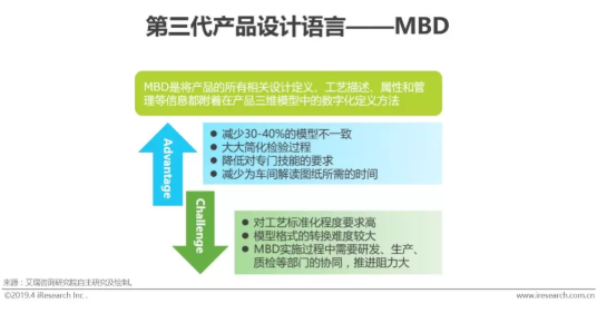 目前CAX類軟件在國內制造業企業中已有一定程度應用基礎,但從發展趨勢及與智能制造系統的契合程度來看,第三代產品設計語言MBD(基于模型的設計)技術將成為數字化設計的主武器,MBD的應用將打通數字化設計與數字化制造,使三維模型成為制造的唯一數據源,讓產品模型在整個生命周期得到充分利用。