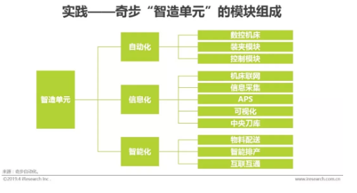 “智造單元”是一種模塊化的小型數字化工廠實踐,整個單元由自動化模塊、信息化模塊和智能化模塊三部分組成,以“最小的數字化工廠”實現企業在多品種小批量乃至單件自動化的生產智能化。
