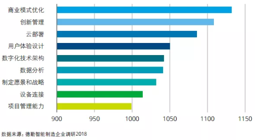 ▲受訪企業亟待提高的能力(企業自我評估權重打分,分值越高能力越弱)