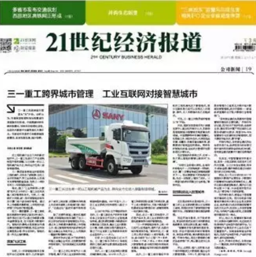 21世紀(jì)經(jīng)濟(jì)報(bào)道:《三一重工跨界城市管理 工業(yè)互聯(lián)網(wǎng)對接智慧城市》